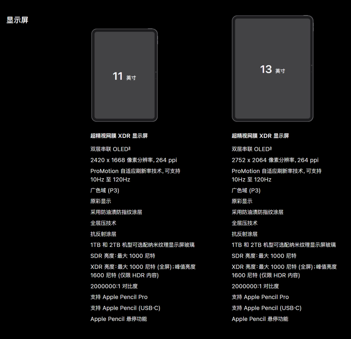 M4iPadPro仅宣传1000尼特全屏亮度与1600尼特HDR峰值亮度