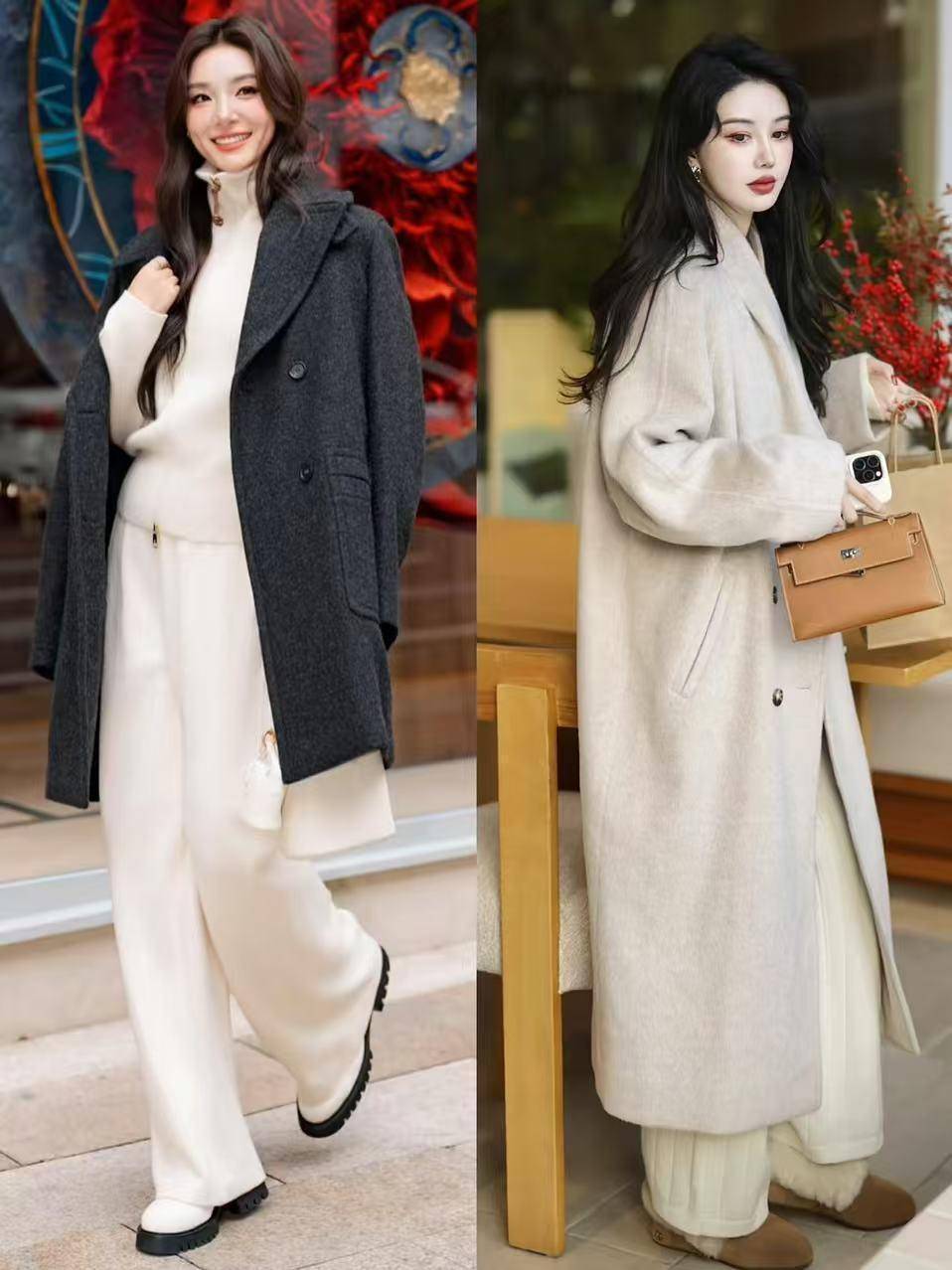 想要自己的冬季大衣穿搭变得高级时尚,材质是最为关键的,如果选择的衣服材质不好,很难穿出像下面这两位时尚博主一样的高贵感。
