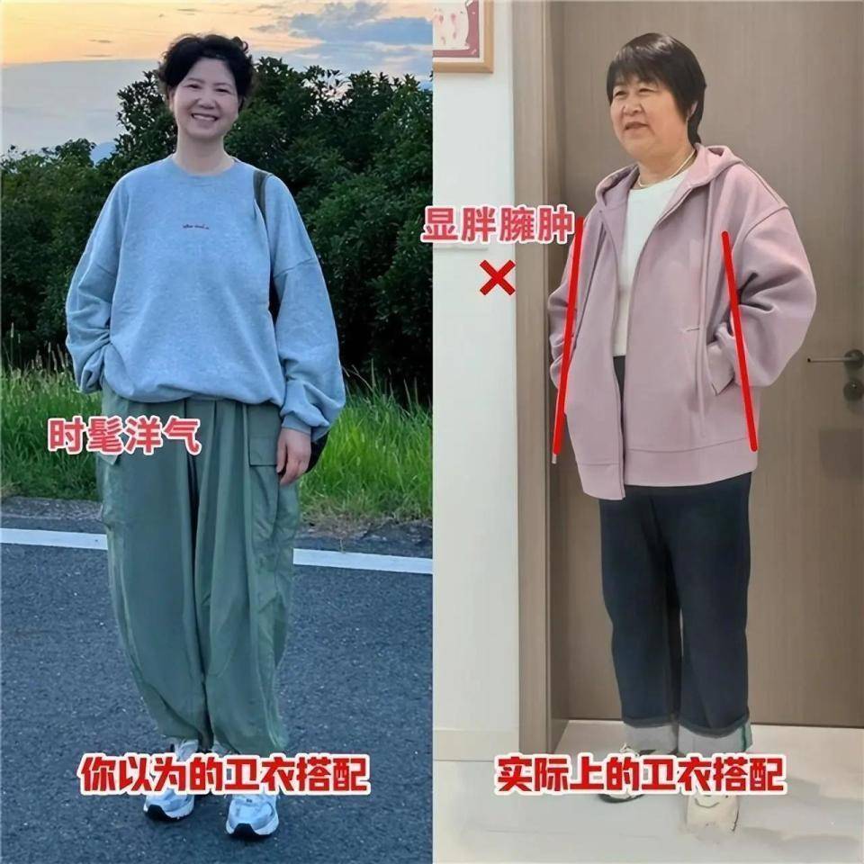 特别是已经有点发福发胖的女性,就想要穿一件卫衣,卫衣版型确实宽松,设想的情况下,自然是用一件卫衣搭配上一条宽松的休闲裤,能穿出时尚的造型。但是实际情况穿卫衣会显得整个人更显胖显臃肿,呈现出一种油腻感。