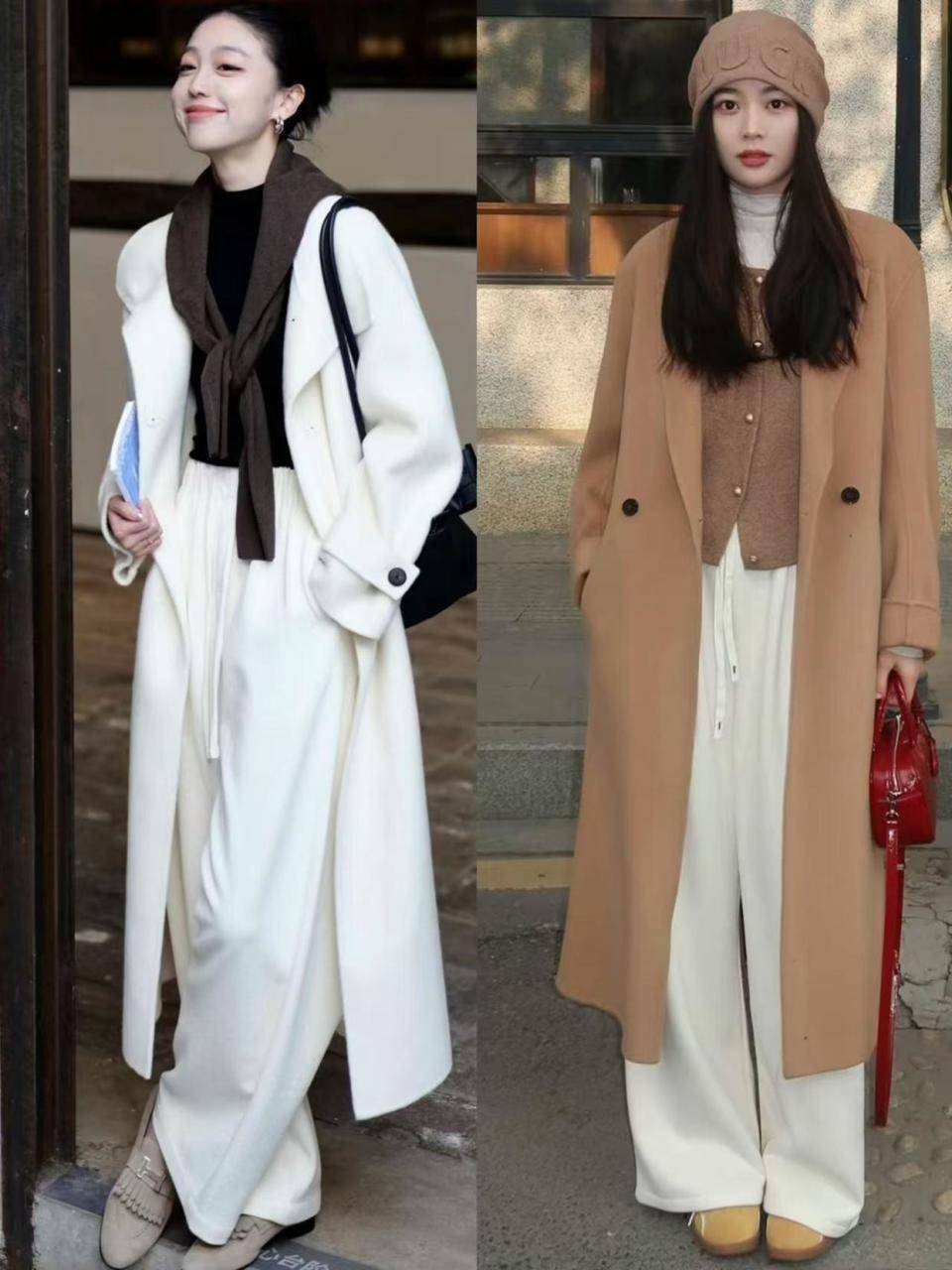 推荐理由②大衣外套搭配阔腿裤,呈现慵懒气质